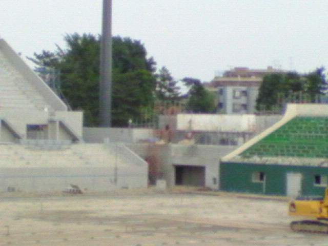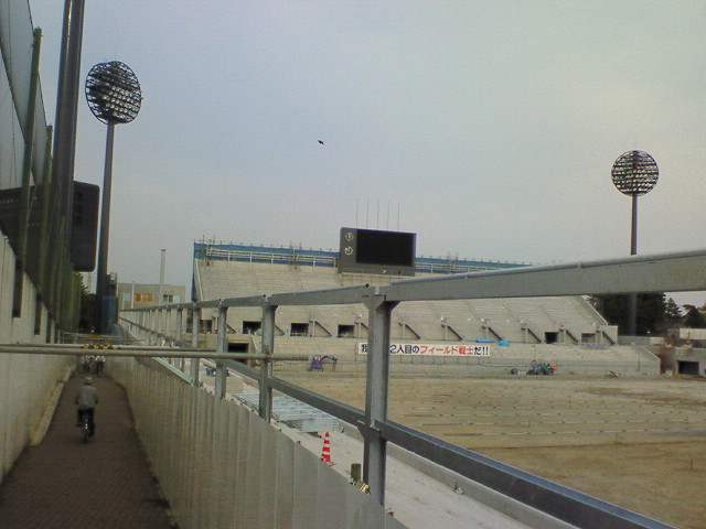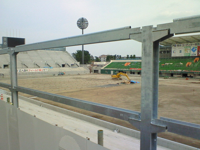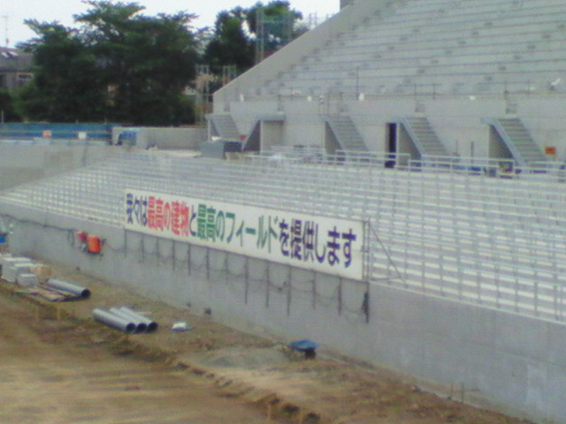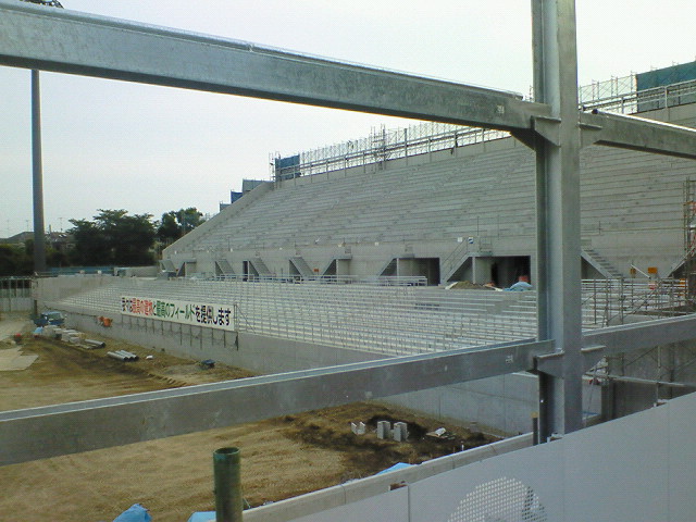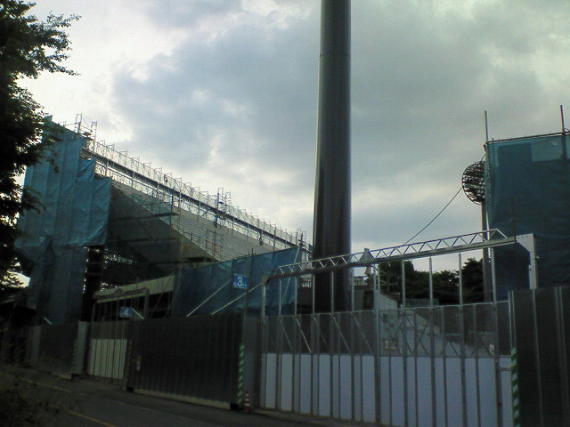 メインとアウェイゴール裏間の連結通路建設中